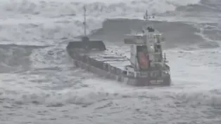بعد أن جرفتها الأمواج العاتية نحو شاطئ مدينة تيشي.