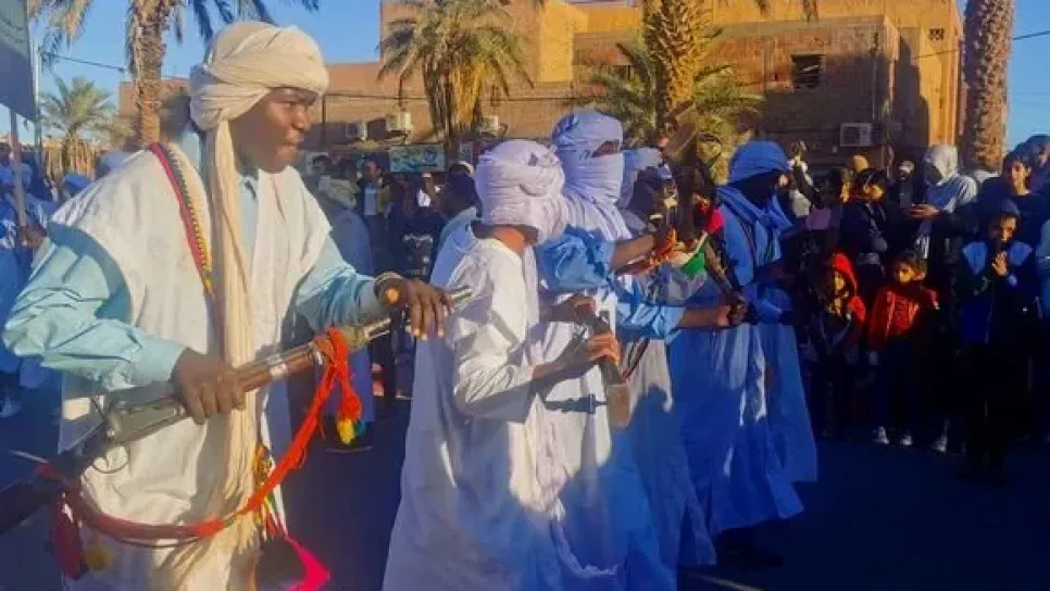 أسدل الستار سهرة أمس السبت بولاية تيميمون على فعاليات الطبعة الـ15 للمهرجان الثقافي الوطني أهلليل بحفل تكريمي للفرق المشاركة والفائزين في مسابقته. وتميز هذا الحفل، الذي احتضنه مسرح الهواء الطلق بتيميمون، بحضور جمهور غفير من محبي هذا التراث والذي قادهم فضولهم المعرفي لاكتشاف وتذوق هذا التراث اللامادي العريق الذي قدمت فيه الفرق المشاركة ألوانا تراثية شيقة من قصائد تراث أهلليل ضمن أداء مشترك مرفوق بعزف آلاته الموسيقية التقليدية. وفي هذا الجانب أبدعت الفرق التراثية التابعة لجمعيات "بوفقوس" من بلدية أولاد عيسى و "انو تامقريوت" من بلدية أوقروت إلى جانب جمعيات "بنات المغرى" و "تنهولاوين...