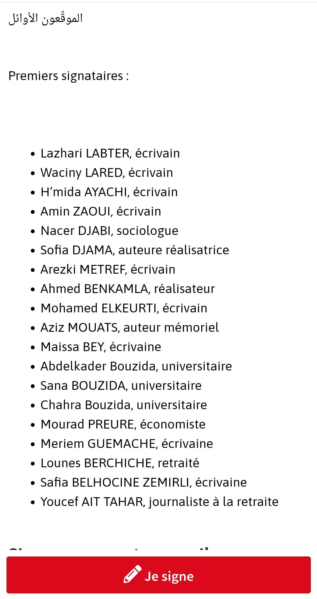 في ظل تواصل الجدل الذي أثارته رواية هوارية، للكاتبة والمترجمة إنعام بيوض، أصدر عدة كتاب وناشرون بيانا نددوا فيه حسبهم "بالحملة الشرسة التي شنت ضد الروائية. وجاء في بيان مساندة للكاتبة ودار النشر ولجنة تحكيم آسيا جبار في طبعتها السابعة أنه "إثر الحملة الشرسة ضد الروائية والمترجمة إنعام بيوض وروايتها" هوارية "وإثر قرار منشورات ميم بتوقيف نشاطها تحت الضغوط التي يمارسها أعداء الفن والثقافة، نحن الكتاب والناشرون والمكتبيون والصحفيون ندد بشدة وحزم بالهجوم الوضيع والتهديدات الصريحة ضدهم كما أدانوا المساس بحرية الابداع والنشر والترويج لأعمال الابداعية أيا كان مصدرها وأكدوا دعمهم الكامل للكاتبة وناشر...