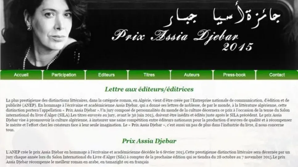 تم تنصيب اليوم الاثنين بالجزائر العاصمة لجنة تحكيم جائزة آسيا جبار للرواية التي ستمنح خلال أيام المعرض الدولي للكتاب المزمع تنظيمه من 27 أكتوبر إلى 7 نوفمبر2015. وتضم لجنة التحكيم التي يترأسها الكاتب مرزاق بقطاش 11 عضوا من بينهم نقاد و مترجمين و جامعيين و مؤلفين من أمثال ناصر خوجة وحسان بورايو وحكيمة صبايحي ومحمد ساري. وأكد وزيرالثقافة عزالدين ميهوبي على هامش تنصيب هذه اللجنة بوزراة الثقافة على أهمية الجائزة التي اعتبرها فرصة "لتحفيز الناشرين في التفكير في الأعمال الأكثر منافسة وذات نوعية وكذا خلق حيوية "في سوق الكتاب باعتبار الجائزة تحمل اسم الأديبة العالمية آسيا جبار ولأنها (الجائزة) تمول من...