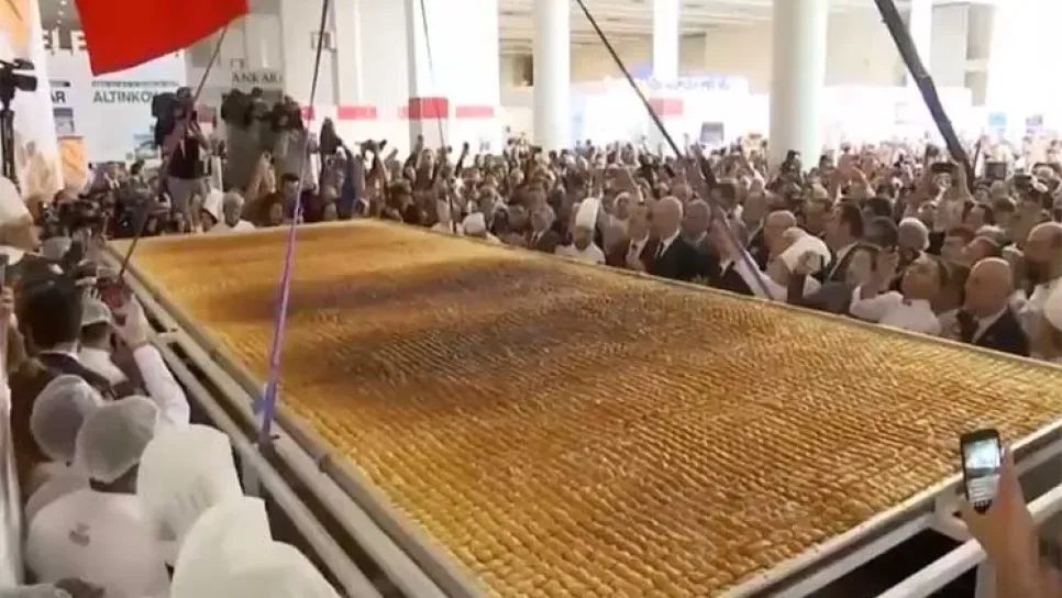 سجلت مجموعة من الطهاة في تركيا يوم الخميس رقما قياسيا بصنع أكبر بقلاوة في العالم تزن أكثر من نصف طن.وقدمت صينية البقلاوة العملاقة في ”قمة الطهي“ في أنقرة حيث تجمع عشرات الزوار للحصول على قطعة منها.وقال محمد كانبور الذي قاد مجموعة من 14 طاهيا ومدير سلسلة محلات مادو للحلويات في تركيا إن الصينية بلغ وزنها 518 كيلوغراما أي أكثر من مثلي الصينية صاحبة الرقم القياسي السابق. وأضاف أن العمل عليها بدأ منذ ستة أشهر.وقالت وكالة الأناضول للأنباء إن مسؤولا من موسوعة غينيس للأرقام القياسية أكد وزن الصينية بعدما راقب الحدث عبر رابط فيديو.وتعد البقلاوة، وأصلها محل نزاع بين تركيا واليونان، بعجينة هش...
