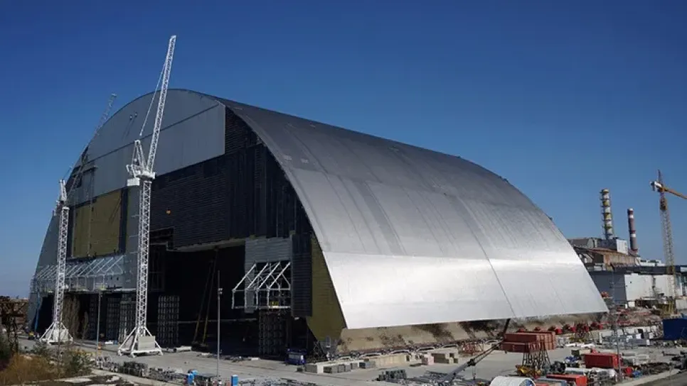في منتصف منطقة معزولة مترامية الأطراف في شمال أوكرانيا جرى تركيب أكبر بناء متحرك في العالم فوق موقع كارثة تشرنوبيل النووية لمنع تسرب الإشعاعات المميتة من المفاعل المنكوب خلال الأعوام المئة المقبلة. وفي 26 أفريل 1986 تسبب اختبار فاشل في المحطة النووية السوفيتية في انتشار سحب دخانية من مواد نووية عبر مناطق واسعة من أوروبا الأمر الذي أدى لنزوح أكثر من 50 ألف شخص وإصابة عدد غير معروف من العاملين الذين شاركوا في عملية التطهير بالتسمم. وكان قد تم بناء تابوت خرساني على عجل فوق موقع المفاعل المنكوب لاحتواء أسوأ التسربات الإشعاعية لكن بدأ العمل على حل أكثر استدامة منذ 2001. وتسهل رؤية قوس الاحتواء ا...