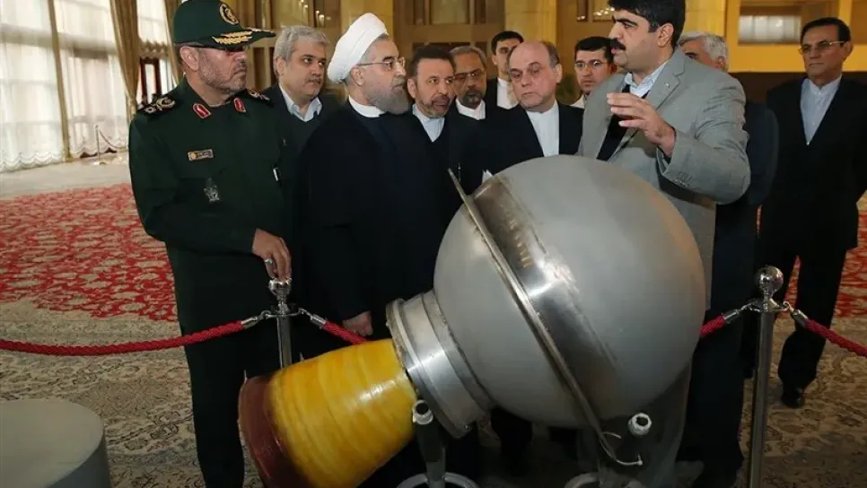 قام الرئيس الإيراني حسن روحاني اليوم الأربعاء بإزاحة الستار عن قمري "بيام امير كبير وناهيد1" الصناعيين و"منظومة النقل الفضائي سامان1" وذلك بمناسبة اليوم الوطني للتقنية الفضائية. وأفادت وكالة تسنيم الدولية للأنباء ان الرئيس الإيراني حسن روحاني قام اليوم الأربعاء بإزاحة الستار عن قمري "بيام امير كبير وناهيد1" الصناعيين و"منظومة النقل الفضائي سامان1" وذلك بمناسبة اليوم الوطني للتقنية الفضائية. كما زار الرئيس روحاني معرض منجزات معهد الأبحاث الفضائية الإيراني واستمع إلى شرح للمدراء والخبراء في مجال التقنية الفضائية حول آخر المنجزات والتقدم في هذا الشأن.