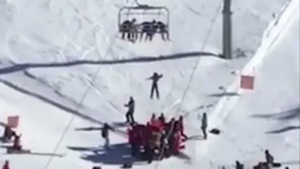 أظهر شريط فيديو لقطات لإنقاذ صبي يبلغ من العمر 11 عاما انزلق من على كرسي ينقل السياح لأعلى منحدر للتزلج، وبقي متشبثا بوالديه لكي لا يسقط للأسفل. وحسب ما نشرت صحيفة "الميرور" البريطانية فقد واجه السياح الحاضرين حالة انتظار مؤلمة في انتظار قدوم خدمات الطوارئ. ووقع الحادث على جبل هوت في سهول كانتربري في جزيرة جنوب نيوزيلندا، وحوالي 10 مترا فوق سطح الأرض. وانتهت المحنة بسلام عندما وضع رجال الإنقاذ فراش تحت الطفل لإسقاطه بأمان.