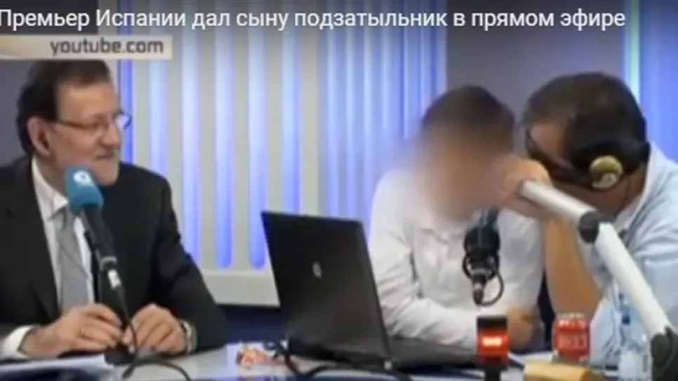صفع رئيس الوزراء الإسباني ماريانو راخوي ابنه البالغ من العمر 10 سنوات ممازحاً ايّاه. وحلّ الاثنان ضيفيين على برنامجٍ يعرض مباراة كرة القدم مباشرة على الهواء. وسأل المذيع الطّفل عن رأيه بتعليق المعلّق الرّياضي فقال " كان من الممكن ان يكون الأداء أفضل إذا لم نرد أن نقول عنه بأنه زبالة".