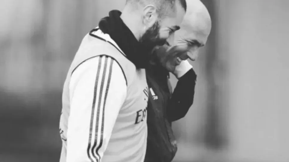 نشر لاعب ريال مدريد كريم بن زيمة الصورة تجمعه مدربه زين الدين زيدان وهما يضحكان..