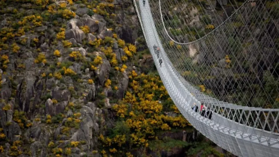 أصبح أطول جسر معلَّق للمشاة في العالم بشمال البرتغال جاهزاً لاستقبال الزوار، حيث يأمل سكان البلدة المجاورة أن يساعد الجذب السياحي في إحياء المنطقة التي دمرت اقتصادها جائحة "كورونا"، وفقاً لصحيفة "الغارديان". يقع الجسر الذي يبلغ طوله 516 متراً (1700 قدم) والمخبأ بين الجبال الصخرية المغطاة بالخضرة والزهور الصفراء داخل حديقة أروكا الجيولوجية المعترف بها من قبل "اليونيسكو"، على ارتفاع 175 متراً فوق نهر بايفا سريع التدفق. قبل حفل الافتتاح الرسمي يوم الأحد، سُمح للأشخاص من بلدة أروكا القريبة بالسير فوق الشبكات المعدنية الشفافة للهيكل الضخم. وأشارت مارغريدا بيليم رئيسة بلدية أروكا لـ "وكالة الصحاف...
