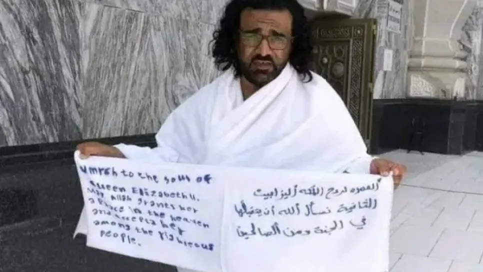 أعلنت السلطات السعودية، الثلاثاء، توقيف يمني أعلن في مقطع فيديو أنه أدى العمرة لروح ملكة بريطانيا الراحلة إليزابيث الثانية، منتهكا بذلك "أنظمة وتعليمات" هذه المناسك ومخالفا أحكام الشريعة الإسلامية التي تمنع أداء هذه الفريضة نيابة عن غير المسلمين. وأثار المقطع غضب العديد من مستخدمي موقع تويتر، إذ طالبوا السلطات بتوقيف صاحبه حيث لا يجوز وفقا لأحكام الشريعة الإسلامية أداء الحج أو العمرة نيابة عن غير المسلمين. ومقطع الفيديو الذي صوره اليمني في المسجد الحرام بمكة أثار جدلا كبيرا على مواقع التواصل الاجتماعي في السعودية التي تحظر رفع أي لافتات أو شعارات سياسية أو مذهبية أثناء أداء مناسك الحج أو الع...