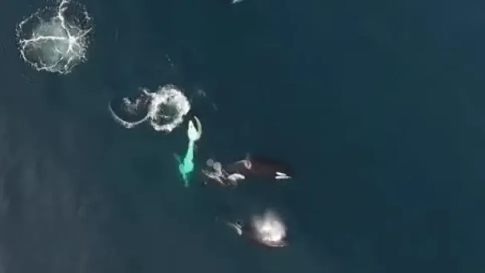 التقط  مصور عبر طائرة الـ "درون"، مشهدا نادرا يصور لنا قيام الحيتان القاتلة بالانقضاض على سمكة قرش، في خليج مونتري في ولاية كاليفورنيا. قال كاتلان تايلور، عالم الأحياء البحرية: "لقد جلب أحد الحيتان سمكة قرش على قيد الحياة، ويُعتقد أنها تنتمي إلى فصيلة  sevengill  المحلية في سان فرانسيسكو ومونتيري، ويمكن أن تصل إلى 10 أقدام في الطول ".تجدر الإشارة إلى أنه من الصعب رصد الحيتان البحرية القاتلة وهي تأكل فريستها تحت المياه، حيث تأكل الأسماك وأسماك القرش والحبار.وجد العلماء أن هذه الحيتان تأكل أسماك القرش، حيث لوحظ في كثير من الأحيان وجود حيتان ميتة على الشواطئ، وفي داخل بطونها...