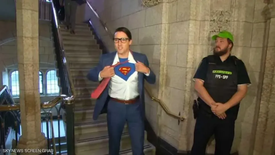 احتفل رئيس الوزراء الكندي جاستن ترودو بعيد الهالوين الثلاثاء مرتديا زي سوبرمان الشهير. فيديو أذاعه تلفزيون هيئة الإذاعة الكندية ظهر ترودو ينزل الدرج.