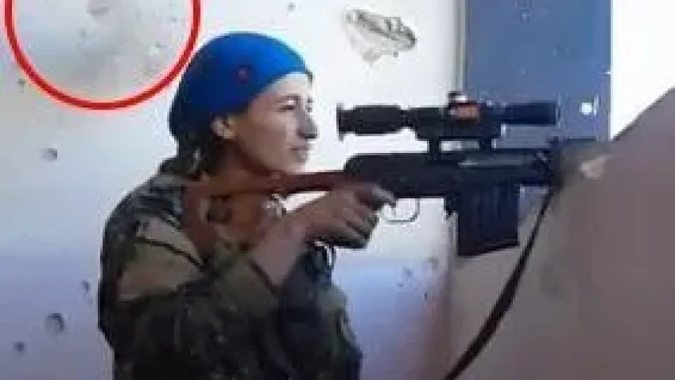 تداول مستخدمو مواقع التواصل الاجتماعي مقطع فيديو يظهر ضحكات مقاتلة من الأكراد بعدما نجاتها بأعجوبة من رصاصة قناص من داعش. وكما يظهر في الفيديو الذي نشر هذا الأسبوع، فإن المقاتلة الكردية وهي تحمل بندقية "قناص" داخل غرفة وبجوارها مقاتل آخر وقد صوبت بندقيتها نحو هدف لـ"داعش"، وفي ذلك الحين تمر طلقة بالقرب من رأسها لتصيب الجدار القريب منها بمسافة لا تتجاوز بضع سنتمترات، لتنجو المقاتلة من الموت المحتم. واظهر التسجيل المصور بعد ذلك، المقاتلة وهي تجلس في مكانها وتضحك قائلة "انا صوبته وهو صوبني ايضا".
