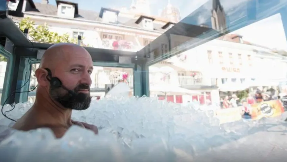 حقق رجل نمساوي رقما قياسيا جديدا يوم السبت بالوقوف في صندوق مملوء بمكعبات الثلج لمدة ساعتين و30 دقيقة و57 ثانية.وقضى جوزيف كويبيرل (42 عاما)، الذي لم يكن يرتدي سوى سروالا للسباحة، هذه المدة وهو مغطى بالثلج حتى كتفيه وواقف داخل صندوق شفاف ضاما ذراعيه إلى صدره. وحطم كويبيرل رقمه القياسي السابق الذي حققه العام الماضي لأطول فترة يتعرض فيها كامل الجسم للثلج وهي ساعتان وثمان دقائق و47 ثانية.وبعد خروجه من ذلك المحبس المتجمد ليستمتع بالجو المعتدل في بلدة ميلك على نهر الدانوب حيث كان حشد صغير يتابعه في الساحة الرئيسية بالبلدة، قال كويبيرل للصحفيين “إنه شعور رائع.. الشمس قبل كل شيء.. الدفء جميل&rd...