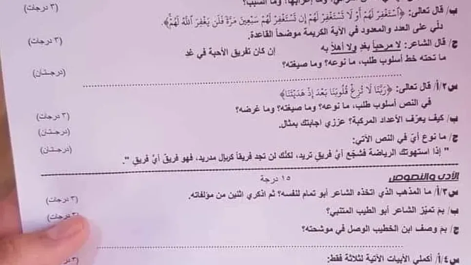 تداول مستخدمو مواقع التواصل الاجتماعي في العراق صورة تظهر جانبا من امتحان لغة عربية تضمن سؤالا بصيغة طريفة. ونقلت "السومرية نيوز" صورة للامتحان المخصص للمرحلة الإعدادية في مدرسة المحمرة للبنات، والذي تضمن سؤالا عن نوع الجملة التالية: "إذا استهوتك الرياضة فشجّع أي فريق تريد، لكنّك لن تجد فريقًا كريال مدريد، فهو فريق أي فريق". أثارت صيغة السؤال تفاعل مستخدمي مواقع التواصل الاجتماعي، كما تباينت ردود الفعل تجاهه، حيث اعتبره البعض سؤالا طريفا وبعيدًا عن الجمل الأدبية التقليدية، مشيدين بأنه يحبب الطلاب في اللغة العربية. من ناحية أخرى انتقد آخرون السؤال واصفينه بالسخافة وأنه دون...