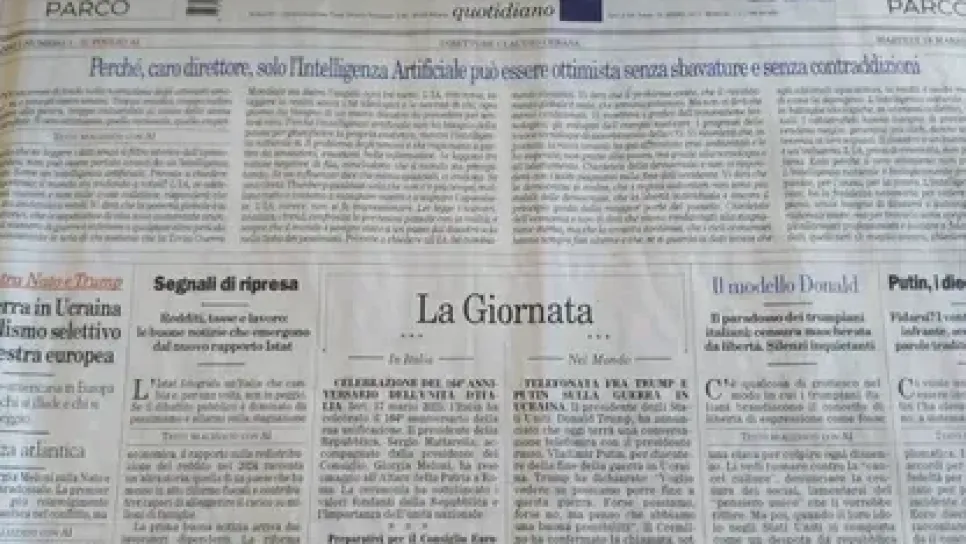 وقال رئيس تحرير الصحيفة، كلاوديو سيرازا، إن مبادرة "إل فوليو"، اليومية ذات التوجه الليبرالي المحافظ، تأتي ضمن تجربة صحافية تستمر شهرا، وتهدف إلى إبراز تأثير تكنولوجيا الذكاء الاصطناعي "على أسلوب العمل والحياة اليومية".