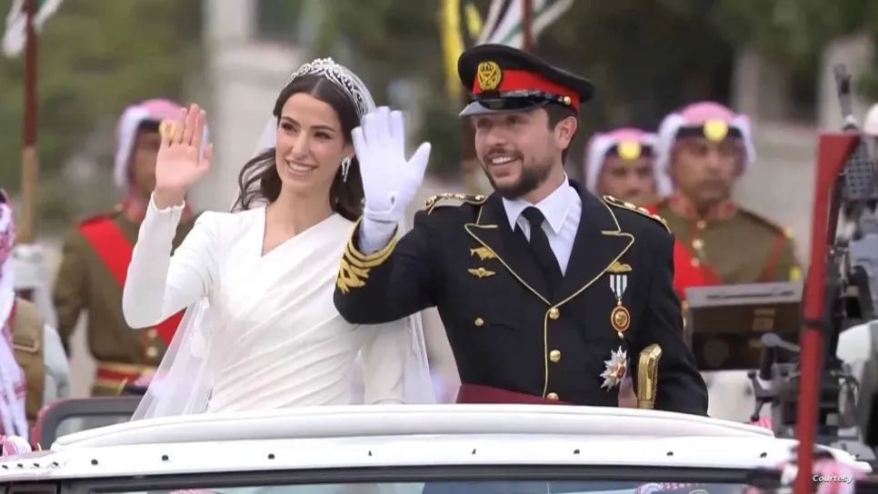 شهد الأردن الخميس مراسم عقد قران ولي العهد الشاب الأمير حسين بن عبدالله والسعودية رجوة آل سيف، بحضور أفراد عائلات حاكمة في منطقة الشرق الأوسط والعالم. وعقد القران في قصر زهران، الذي بني في عمان منتصف خمسينيات القرن الماضي واحتضن حفلات زفاف ملكية سابقة، منها عقد قران الملك عبدالله الثاني، وقبله الملك الراحل الحسين بن طلال. ووقع الأمير (28 عاما) وعروسه (28 عاما) عقد قرانهما بوجود إمام الحضرة الهاشمية الشيخ أحمد الخلايلة، وبحضور عائلتيهما ونحو 140 ضيفا. وجرى استقبال الضيوف من قبل الملك وعقيلته الملكة رانيا في قصر زهران، على نغمات معزوفات القوات المسلحة قبل وصول العروس برفقة شقيق العريس الأمير...