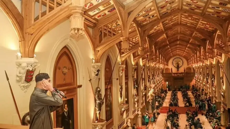 وارتفع صوت الأذان في أنحاء القلعة، في مشهد وصف بأنه لحظة تاريخية نادرة، حيث تجمّع الضيوف لتناول التمر وأداء الصلاة، قبل أن تبدأ وجبة الإفطار الملكية.