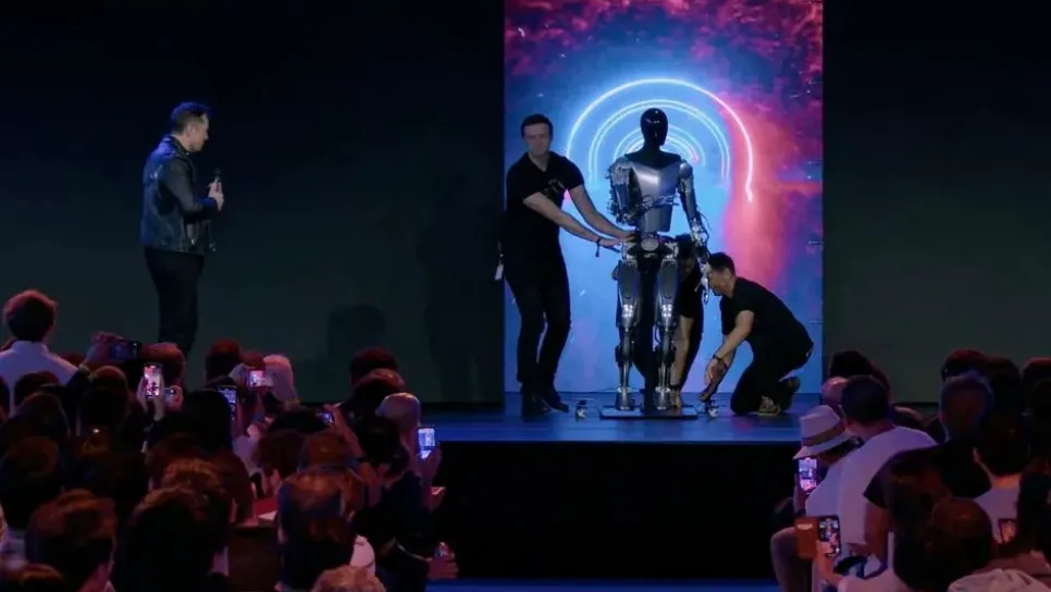 كشف إيلون ماسك الرئيس التنفيذي لشركة "تسلا" (Tesla) عن روبوته الشهير الشبيه بالإنسان "أوبتيموس" خلال فعالية "يوم الذكاء الاصطناعي"، نظمتها شركة تصنيع السيارات.