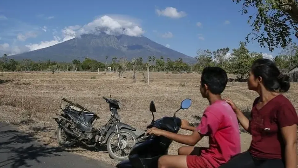 غطت الغيوم قمة أعلى بركان بجزيرة بالى الاندونيسية، اليوم الثلاثاء، وذلك بعد إجلاء آلاف الأشخاص وسط مخاوف من ثوران البركان.وأثارت الهزات البركانية القوية والدخان المتصاعد فوق البركان مخاوف السكان، مما أدى إلى إجلاء أكثر من 75 ألف شخص من قرى تنتشر فيها حقول الأرز قرب جبل اجونج.وقد فرض المسئولون الإندونيسيون منطقة حظر على بعد 12 كيلومترا حول البركان الذى أنفجر فى عام 1963، وتسبب فى مقتل أكثر من ألف شخص وتدمير العديد من منازل السكان وقتها.
