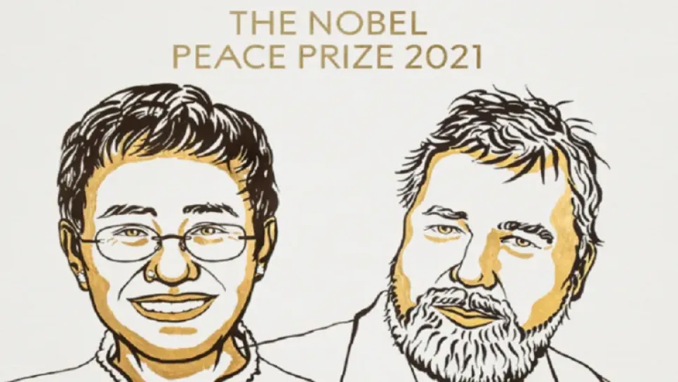 قررت لجنة نوبل النرويجية منح جائزة نوبل للسلام لعام 2021 للصحفية الفيليبينية ماريا ريسا، والصحفي الروسي ديمتري موراتوف، لجهودهما في حماية حرية التعبير. وقال الحساب الرسمي لجوائز نوبل في تغريدة على "تويتر": "قررت لجنة نوبل النرويجية منح جائزة نوبل للسلام لعام 2021 لماريا ريسا وديمتري موراتوف لجهودهما في حماية حرية التعبير، وهو شرط مسبق للديمقراطية والسلام الدائم". ووفقاً لإرادة المهندس والمخترع والكيميائي السويدي، ألفرد نوبل (1833-1896)، والذي اخترع الديناميت في 1867، تمنح جائزة السلام للشخص الذي قام في السنة السابقة بـ "أكثر وأفضل عمل للتآخي بين الأمم، من أجل إلغاء أو تخفيض الجيوش الدائمة، و...