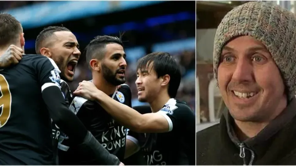 يراهن بداية الموسم، نادي ليستر أحد المرشحين لنيل البطولة الانجليزية؟ أحد..عدا الرجل الذي يظهر الصورة واسمه ليغ هربرت، راهن فوز النادي لأنه عشاقه.