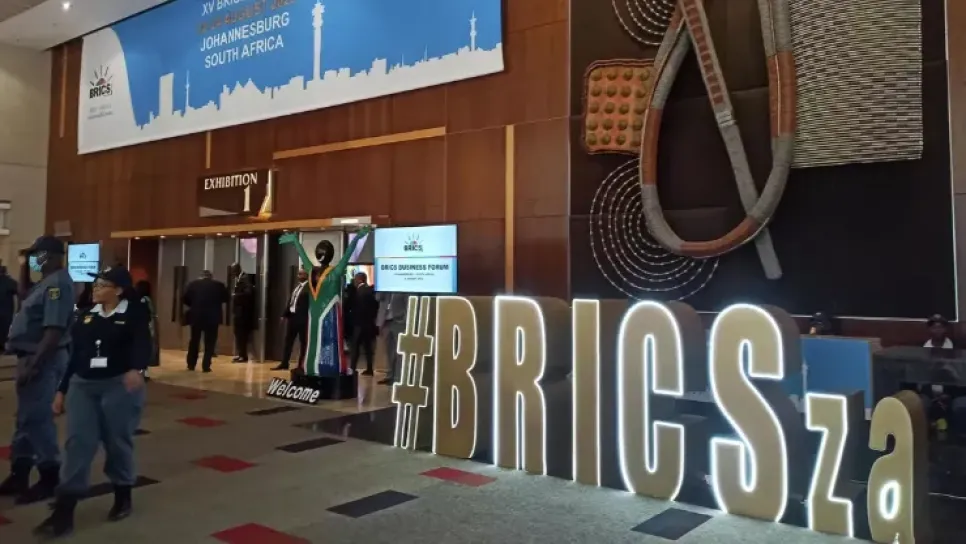أعرب مدير الشرق الأوسط بوزارة خارجية جنوب إفريقيا، السفير أشرف يوسف سليمان عن تفاؤله الكبير بإمكانية انضمام الجزائر لمجموعة البريكس كونها مؤهلة لذلك لعدة اعتبارات. وأكد السفير أشرف يوسف سليمان في تصريح للإذاعة الجزائرية، أن الجزائر تعد من ضمن الدول التي تكتسي أهمية كبيرة في القارة الإفريقية وفي حال انضمامها للبريكس سيجعلها تضطلع بدور بارز في المنطقة. وأوضح المتحدث في السياق ذاته أن ملف انضمام الجزائر بين أيدي رؤساء الدول الخمس للمجموعة الاقتصادية خاصة بعد موافقتهم على توسعة مجموعة البريكس.