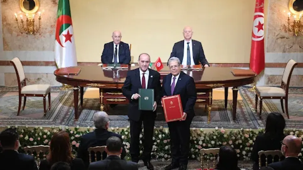 وقعت الجزائر وتونس، أمس الأربعاء، 27 اتفاقية تعاون تتعلق بالعديد من القطاعات، على هامش زيارة الدولة التي يقوم بها الرئيس عبد المجيد تبون إلى تونس. وتتعلق الاتفاقيات بقطاعات العدالة والداخلية والجماعات المحلية والطاقة والصناعة بالإضافة إلى البيئة ومجالات أخرى. وكان الرئيسان عبد المجيد تبون وقيس سعيد، أجريا جلسة محادثات ثنائية، تلتها جلسة موسعة بحضور وفدي البلدين. واعتبر سعيد أن "هذه الزيارة التاريخية ستكون فاتحة لصفحة جديدة وواعدة في مسار العلاقات المتينة بين البلدين". وحسب بيان لرئاسة الجمهورية التونسية، "تم خلال هذه المحادثات التنويه بما يجمع تونس والجزائر من إرث حضاري مشترك ومحطات نضال...