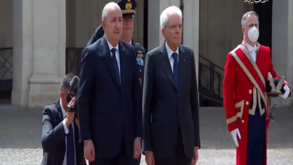 استقبل رئيس الجمهورية عبد المجيد تبون، اليوم الخميس، بالقصر الجمهوري بروما من قبل رئيس جمهورية إيطاليا سيرجيو ماتاريلا. ويجري الرئيسان في هذه الأثناء، محادثات ثنائية.