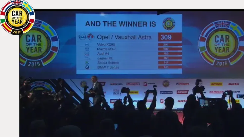 أعلنت اليوم لجنة التحكيم في الطبعة ال 86 للصالون الدولي للسيارات بجنيف والمشكلة من 58 صحفيا اوربيا محترفا عن نتيجة التصويت النهائي لأختيار السيارة الأولى في العالم لعام 2016 والتي توجت سيارة أوبل فوأكسا ول أسترا بلقب سيارة العام الجديد بمجموع 309 نقطة . وتتنافست في هذه التظاهرة 7 ماركات هي " أودي أ 4 تحصلت على 189 نقطة و،بي أم دوبل في سيري 7 143 نقطة و،جقوار أكس أو 163 نقطة و،مازدا أم أكس 5 202 نقطة و،أوبل .فوكس هال أسترا الفائزة 309 نقطة و،سكودا سيبارب 147 ، فولفو أكس سي 90 تحصلت على 294 نقطة " حيث اجرت هذه ا...