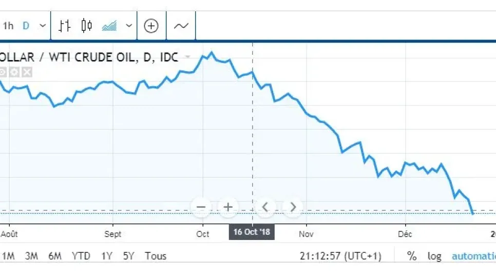 هبطت أسعار النفط بأكثر من ستة بالمائة إلى أدنى مستوى في أكثر من عام اليوم الإثنين مع تضرر الأسواق من مخاوف بشأن تباطؤ الاقتصاد العالمي. وسجلت العقود الآجلة للخام الأمريكي وخام القياس العالمي مزيج برنت أدنى مستوى منذ عام 2017 خلال الجلسة، مما جعل الخامين على مسار الهبوط بنحو 40 بالمائة خلال الربع.وسجلت العقود الآجلة للخام الأمريكي أدنى مستوى منذ 22 يونيو 2017، بينما بلغ خام برنت أدنى مستوى منذ 17 أغسطس 2017. وتعرضت الأسواق على كافة مستويات الأصول لضغوط مع تنامي المخاوف بشأن النمو بفعل إغلاق الحكومة الأمريكية. واتجه المستثمرون إلى الملاذات الآمنة مثل الذهب وأدوات الدين الأمريكية....