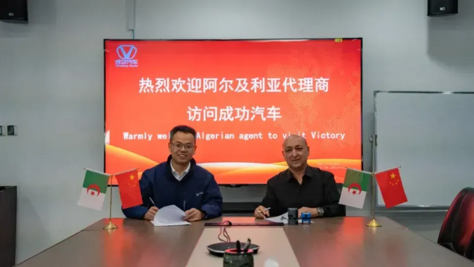 وبعد الزيارة، جرت مراسم التوقيع على العقد الذي يربط الطرفين. وأشار البيان إلى أن هولدينغ "سوديفام"، سيستفيد من خبرة الصانع الصيني ومن خلال توفير مركبات وفق نظام KD استجابة للقوانين الجزائرية.