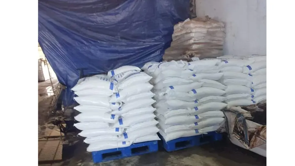 agents brigade économique répression fraude wilaya d'Alger ont saisi, mardi, quantité importante sucre l'intérieur d'un chantier construction. min.