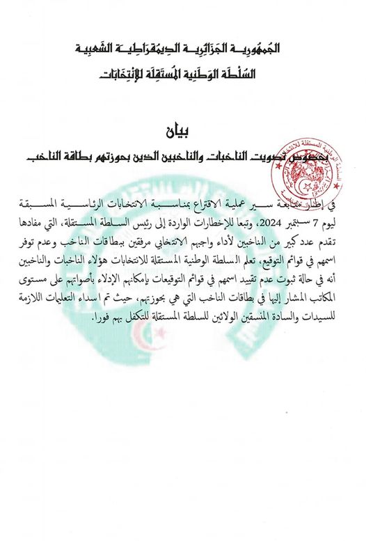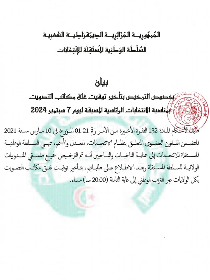 Le processus de vote pour élire le onzième président de l'Algérie indépendante a commencé, ce samedi, avec trois candidats en lice pour cette élection anticipée : Hassani Chérif, Youssef Aouchiche, et Abdelmadjid Tebboune. Voici les moments clés et les développements de cette journée : Fermeture des bureaux de vote et début du dépouillement des urnes dans différents centres de vote à travers le pays et à l'étranger. Le président de l'Autorité nati...