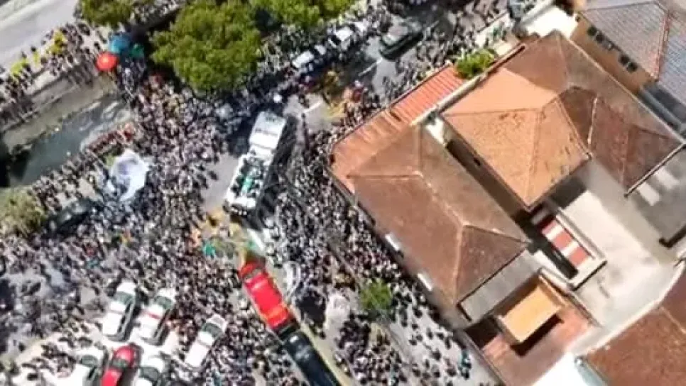 C'est la fin de la procession, débutée en début d'après-midi dans les rues de Santos. Le cercueil de la légende brésilienne est arrivé au cimetière vertical, où auront lieu les obsèques réservées à la famille.Le corps de Pelé va reposer dans un mausolée conçu spécialement pour lui, un espace réservé de 200 m2 qui rappelle un stade de football, avec du gazon synthétique et des photos du triple champion du monde.