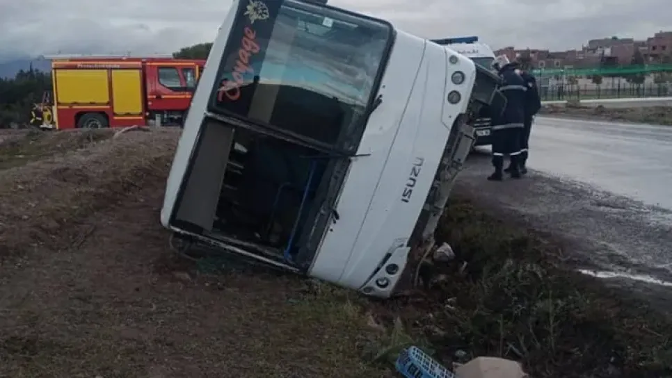 Protection Civile est intervenue matin environs 07h30, accident circulation impliquant bus transport voyageurs niveau route nationale 100..