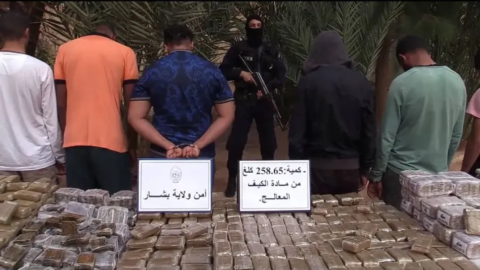 La police de Bechar a avorté une opération de trafic de plus de deux quintaux et demie de drogues provenant du Maroc et démantelé un réseau criminel composé de 9 individus, âgé entre 24 et 43ans.Deux individus ont été interceptés dans un véhicule transportant 123.6kg de drogues. Les enquêtes ont ensuite conduit à l'arrestation de 03 autres individus originaires de la région frontalière Lahmer à Béchar et à la saisie de 135.05kg de drogues.Quatre autres individus on...