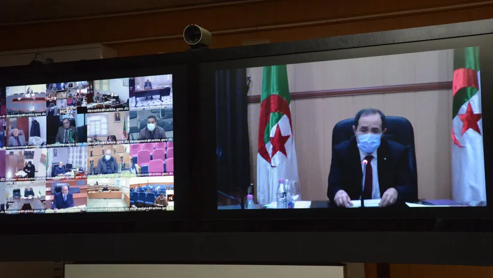 Le ministre de l’éducation nationale, Abdelhakim Belabed, a souligné aujourd’hui à Alger, la nécessité d’un "suivi attentif" de la situation sanitaire dans les établissements scolaires, insistant sur l’importance de la "stricte application" du protocole sanitaire pour faire face à la pandémie de covid-19, selon un communiqué du ministère. Le ministre a mis l’accent lors des travaux de la conférence nationale virtuelle à laquelle ont participé des gest...