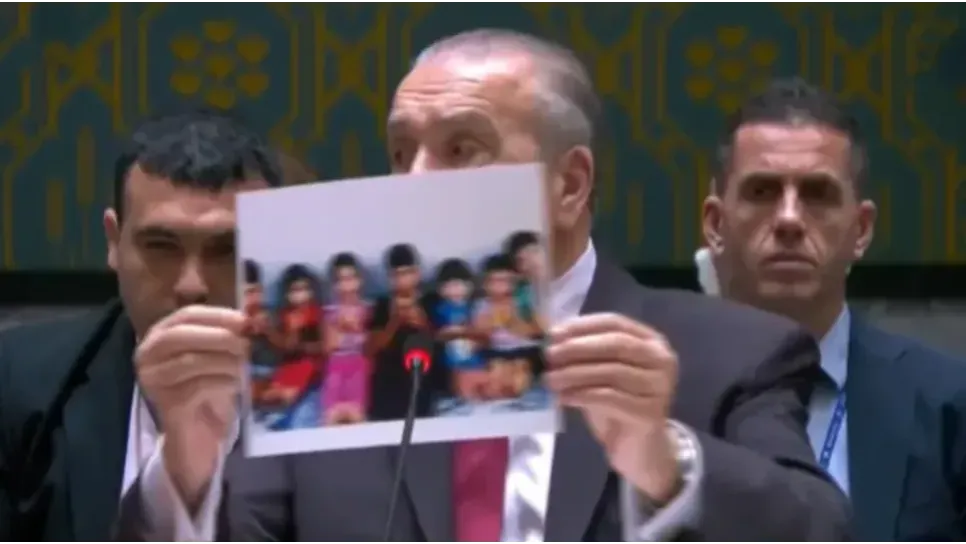 Dans un geste fort, Benjamaa a brandi la photo des enfants martyrs au sein de la salle du Conseil, rappelant par cette image la brutalité de l’agression et l’ampleur des pertes humaines.