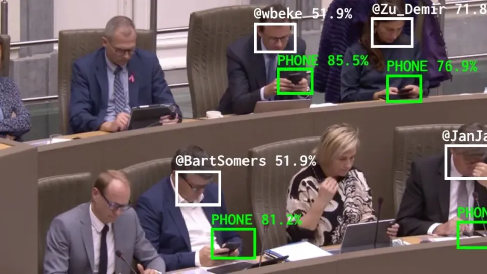 ابتكر المطور البلجيكي درايس ديبورتر أداة ذكاء اصطناعي تحسب مقدار الوقت الذي يصرف فيه السياسيون انتباههم لهواتفهم أثناء الاجتماعات البرلمانية.تُعرف الأداة باسم "سكروليرز" (Scrollers)، وهي مبرمجة بلغة "البايثون" (Python)، وتستخدم تقنيات التعلم الآلي والتعرف على الوجوه.ويشترط القانون البلجيكي أن تكون جميع اجتماعات الحكومة متوفرة بشكل مباشر للجمهور؛ ولذلك تبثها الحكومة مباشرة على قناتها على اليوتيوب. ويستخدم البرنامج تقنية التعرف على الوجوه للتعرف على السياسي، ثم يتتبع مقدار الوقت الذي يقضونه على هواتفهم أثناء البث.ثم ينتقل إلى منصات وسائل التواصل الاجتماعي مثل "تويتر" (Twitter) و"إنستغرام" (Insta...