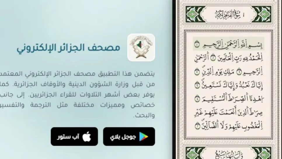 وأوضحت الوزارة في منشور لها عبر صفحتها الرسمية على "الفايسبوك"، أن تطبيق "مصحف الجزائر" للمبصرين يتيح تصفح المصحف الشريف برواية الإمام ورش عن الإمام نافع، وفق الضبط المعتمد في الجزائر، مع خصائص تسهّل القراءة والتصفّح عبر الهواتف الذكية.
