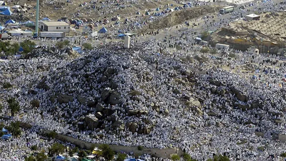قال رسول الله صلّى الله عليه وسلّم: ”الحجّ عرفة” رواه الترمذي والنسائي، وفي ذلك دلالة أكيدة على أهمية هذا الرُّكن من الحجّ حتّى كأنّه الحجّ كلّه.يقع جبل عرفات خارج حدود الحرم، حيث يبعد عن مكة 21 كيلو مترًا تقريبًا، وهو أحد حدود الحرم من الجهة الشرقية، وإجمالي مساحته 10.4كم²، وقد وُضِعَت علامات تبيّن حدوده، فيجب على الحاج أن يتنبه لها حتّى لا يقف فيما ليس بموقف فيفوته الحجّ.ويجتمع الحجّاج فيه يوم التاسع من شهر ذي الحجّة، ويُصلّون الظهر والعصر قَصْرًا وجمع تقديم، ويبقون هناك إلى غروب الشّمس.ويستحبّ يوم عرفة الإكثار من الدّعاء والاستغفار وقراءة القرآن، لقوله صلّى...