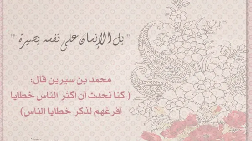 قد يكون الانشغال بعيوب النّاس والتحدّث بها بمثابة ورقة التوت الّتي يحاول المرء أن يغطّي بها عيوبه وسوءاته، فقد سمع أعرابي رجلًا يقع في النّاس، فقال: ”قد استدللت على عيوبك بكثرة ذِكرك لعيوب النّاس؛ لأنّ الطالب لها يطلبها بقدر ما فيه منها”. وقد قيل كما رواه البيهقي في كتاب ”الزهد”: [مَن نظر في عيوب النّاس، عميَ عن عيوب نفسه].كما أنّ انشغاله بعيوب النّاس يَجُرّ العبد إلى الغيبة والعياذ بالله، والكلّ يعرف ما في الغيبة من إثم ومساوئ يتنزّه عنها المسلم الحقّ، كما أنّها تؤدّي إلى شيوع العداوة والبغضاء بين أبناء المجتمع، فحين يتكلّم المرء في النّاس فإنّهم سيتكلّمون فيه، و...