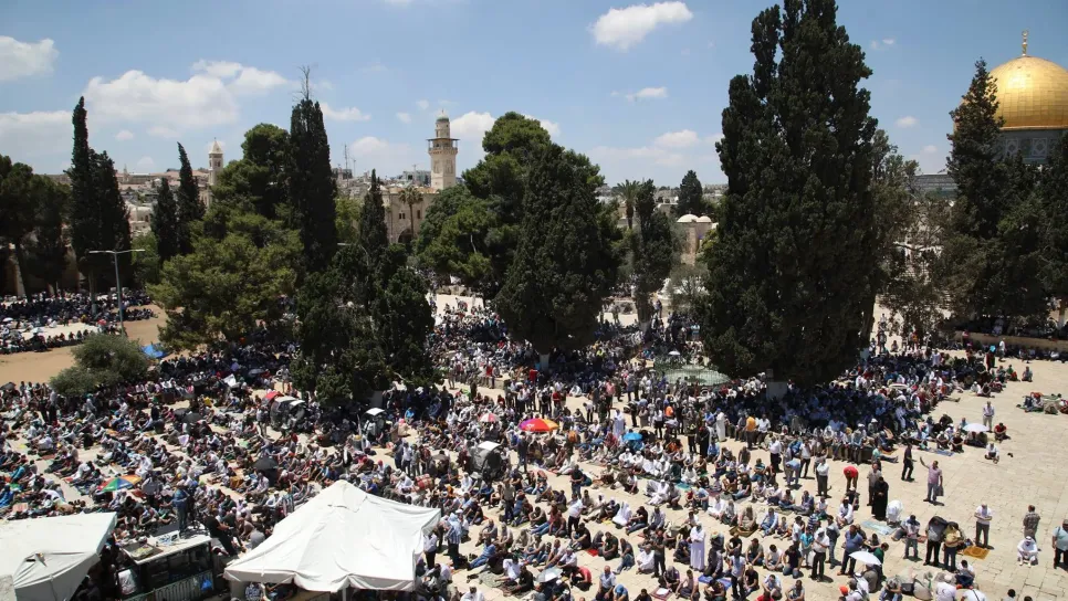 أدى 150 ألف فلسطيني صلاة الجمعة الرابعة والأخيرة من شهر رمضان في المسجد الأقصى بالقدس اليوم، وسط قيود إسرائيلية. وقال الشيخ عزام الخطيب مدير عام دائرة الأوقاف الإسلامية في القدس لوكالة الأناضول، إنه "وفقا لتقديراتنا فإن 150 ألف مصل أدوا صلاة الجمعة في المسجد الأقصى". وكان عشرات آلاف الفلسطينيين بدأوا التوافد إلى المسجد الأقصى منذ ساعات فجر اليوم، فيما ينتظر أن يبقى آلاف منهم حتى صلاة التراويح مساء اليوم. وعدّ الشيخ محمد حسين مفتي القدس والديار الفلسطينية في خطبة الجمعة، قدوم آلاف المصلين إلى المسجد، أنه تأكيد على أن المسجد للمسلمين وحدهم وتمسكهم بمسجدهم بمساحته كاملة. ودعا المصلين...