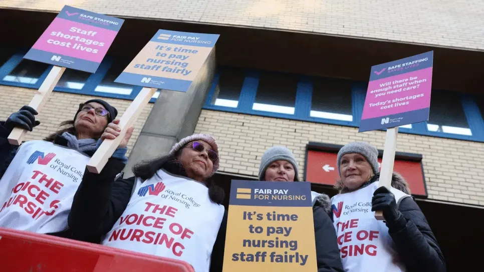 نفذ عشرات الآلاف من العاملين في القطاع الصحي في المملكة المتحدة، اليوم الخميس، إضرابا عن العمل وصف بأنه "تاريخي وغير مسبوق". بدأ الآلاف من العاملين في القطاع الصحي، خاصة التمريض، إضرابا يستمر يومين، مطالبين برفع أجورهم ودعم القطاع الذي بات يعاني من الضغط عليه نظرا لوجود نحو 47 ألف وظيفة فيه شاغرة. ووصف الإضراب بأنه الأكبر في تاريخ النظام الصحي الحكومي في بريطانيا، حيث يشارك فيه نحو 100 ألف من الممرضات والممرضين من جميع أنحاء المملكة المتحدة، (إنجلترا وويلز وإيرلندا الشمالية، ما عدا اسكتلندا). ويستمر الإضراب من الساعة الثامنة صباحاً حتى الثامنة مساء. وقد أدى الإضراب إلى إلغاء وإعادة جدولة ال...