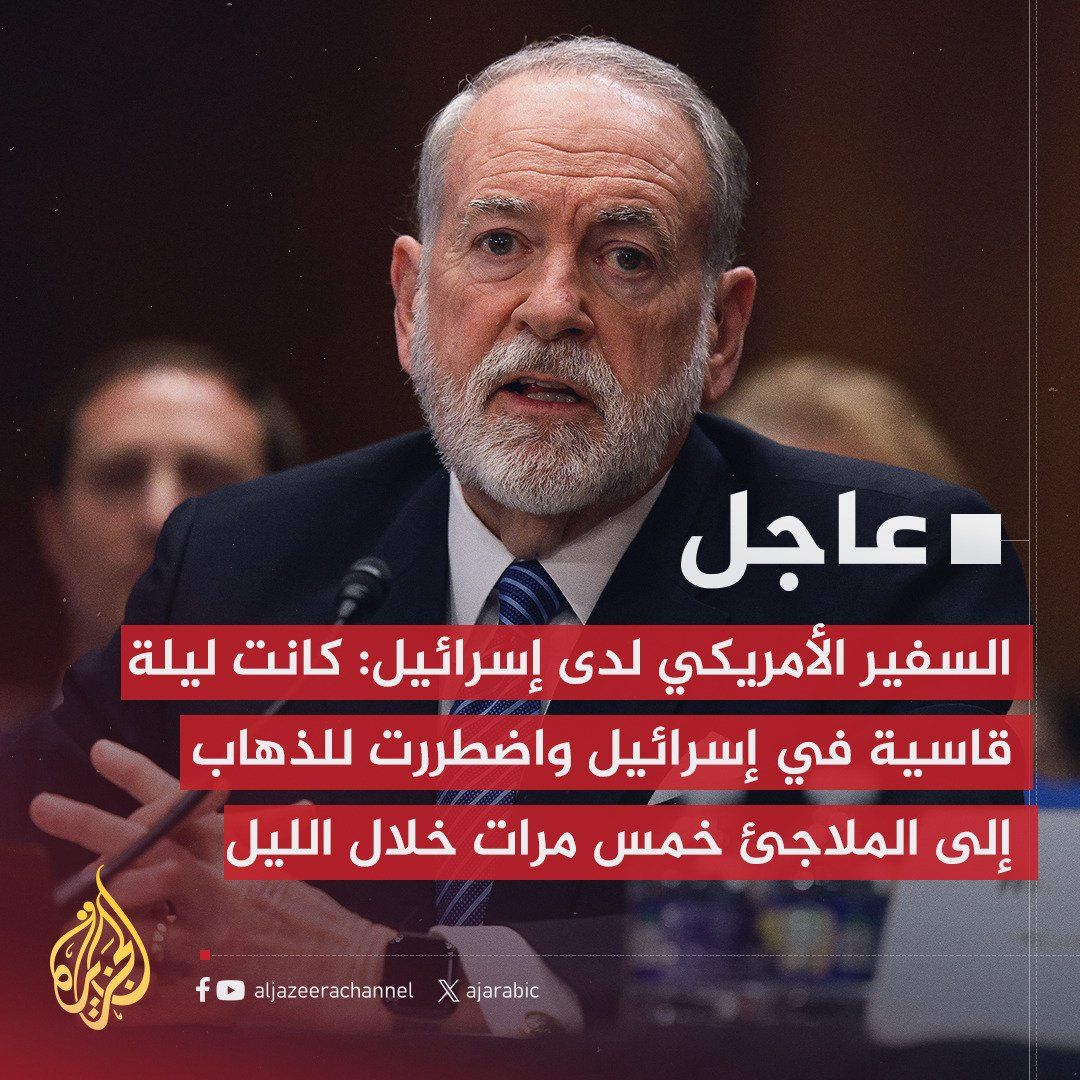 وقال السفير الأمريكي لدى الاحتلال، مايك هاكابي، إن الهجمات كانت "قاسية ومكثفة"، مضيفًا أنه اضطر للنزول إلى الملاجئ خمس مرات خلال الليل بسبب صفارات الإنذار ودوي الانفجارات.