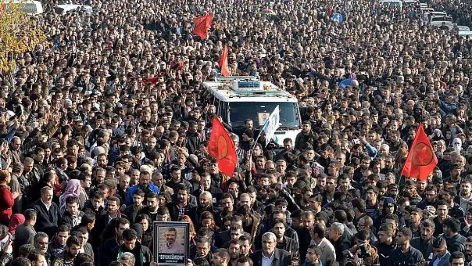 شارك نحو 50 ألف شخص، في دياربكر جنوبي شرق تركيا، في مراسم تشييع المحامي الكردي المعروف طاهر التشي الذي قتل خلال تبادل لإطلاق النار بين الشرطة ومسلحين مجهولين.جنازة الطاهر التشي حضرها زملاؤه وعائلته وكذلك زعيم حزب الشعوب الديمقراطي صلاح الدين ديمرتاش وأعضاء من حزبه.و صرح الرئيس السابق لنقابة المحامين: “ فليعلم الجميع بأننا سنواصل إرث الطاهر التشي المتعلق بالقوانين والحقوق ومعركته القانونية، سنواصل العمل على قضيته. لن نتوقف وأنا أقول هذا كمدافع على حقوق الإنسان وكزميل له وكصديق ، سنواصل على خطاه “.التشي المحامي المعروف بالتزامه بالقضية الكردية واجه متاعب مع القضاء منذ تأكيده في منتصف...