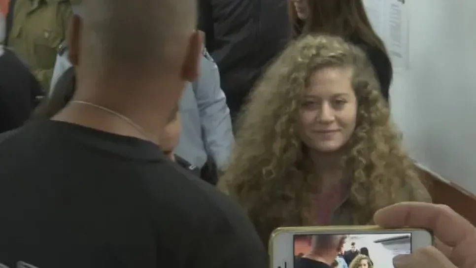 قررت المحكمة العسكرية الإسرائيلية، اليوم الثلاثاء، تمديد اعتقال الفتاة الفلسطينية، عهد التميمي، التي تُحاكم بتهمة ضرب جنديين في الجيش الإسرائيلي. وقالت محامية التميمي، غابي لاسكي، للصحافيين خارج المحكمة "القانون العسكري يسمح بمحاكمة القصر في جلسات مغلقة، ولا يجوز اختلاط البالغين مع القصر". وأضافت: "لكن في محكمة عهد ومنذ البداية كانت المحكمة مفتوحة". وأوقفت عهد التميمي، في ديسمبر 2017، إثر انتشار شريط فيديو تظهر فيه وهي تضرب جنديين إسرائيليين في قريتها النبي صالح في الضفة الغربية. ودخلت عهد التميمي إلى قاعة المحكمة الإسرائيلية العسكرية، الثلاثاء، مكبلة اليدين والقدمين، وعند التمعن في المشهد...