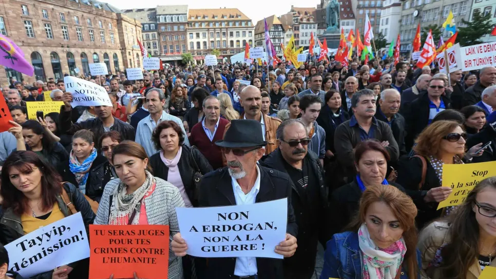 تظاهر نحو 10الاف شخص في اسطنبول محملين الحكومة التركية مسؤولية الاعتداء المزدوج الذي استهدف تجمعا معارضا من اجل السلام في انقرة. وخلف لافتة كبيرة كتب عليها "نعرف القتلة"، هاجم المتظاهرون الرئيس الاسلامي المحافظ رجب طيب اردوغان وحزبه العدالة والتنمية الحاكم منذ 2002. وهتف هؤلاء في جادة الاستقلال في قلب الشطر الاوروبي من اسطنبول "اردوغان قاتل" و"السلام سينتصر". وجرت التظاهرة وسط انتشار كثيف لقوات الشرطة من دون تسجيل اي حادث. وقتل 86 شخصا على الاقل في تفجيرين هما الاكثر دموية في تاريخ تركيا المعاصر يرجح انهما انتحاريان واستهدفا تجمعا للسلام في انقرة دعت اليه المعارضة الموالية للاكراد قبل ثلا...