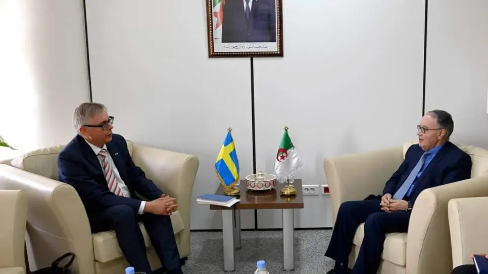 استقبل الأمين العام لوزارة الشؤون الخارجية والجالية الوطنية بالخارج، عمار بلاني، بمقر الوزارة، سفير السويد بالجزائر، بيورن هاغمارك. وحسب بيان للوزارة، فقد سمح هذا اللقاء باستعراض علاقات الصداقة الودية التي تربط البلدين والتأكيد على الالتزام المشترك بتنشيط وتوسيع التعاون الثنائي في الميادين ذات الاهتمام المشترك، سيما الرقمنة والاقتصاد الأخضر والبحث العلمي.كما شكل اللقاء، حسب نفس المصدر، فرصة للتطرق للمواعيد الثنائية المرتقبة والتأكيد خاصة على أهمية عقد الدورة الثالثة من المشاورات السياسية الجزائرية - السويدية في أقرب الآجال الممكنة.وتناول الجانبان أيضا "التحضيرات المتعلقة بعقد الاجتماع ال20 لوز...