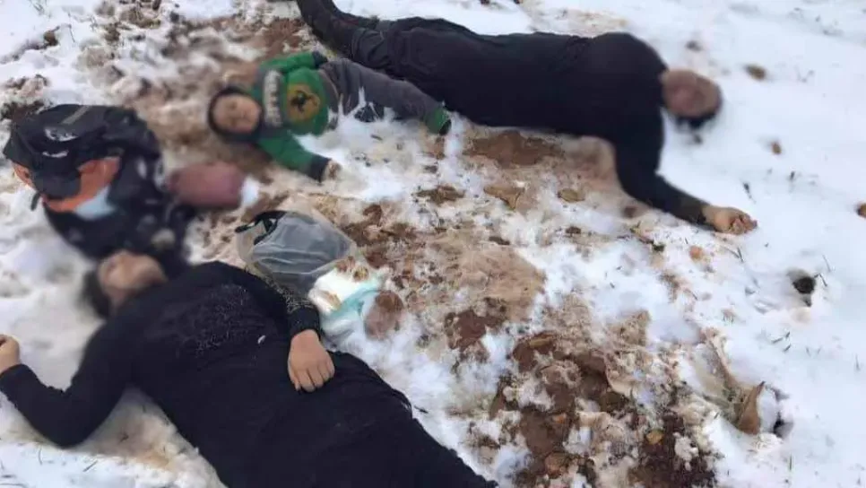 صدمة جديدة مصدرها سوريا، حيث انتشرت صور للاجئين سوريين ماتوا من البرد، لكن أكثر الصور ألما كانت لعائلة سورية أسندت ظهرها للأرض الباردة، ورفعت وجهها للسماء، حيث رحمة الله. في غضون ذلك، أعلنت قيادة الجيش اللبناني العثور على جثث لاجئين سوريين عالقين في الثلوج في جرود منطقة "الصويرة – المصنع"، خلال محاولة دخولهم خلسة إلى الأراضي اللبنانية. بيان الجيش اللبناني، أشار إلى العثور على جثث 9 نازحين قضوا نتيجة العاصفة الثلجية، فيما تم إنقاذ 6 أشخاص آخرين، توفي أحدهم لاحقاً بأحد المستشفيات متأثراً بالصقيع.