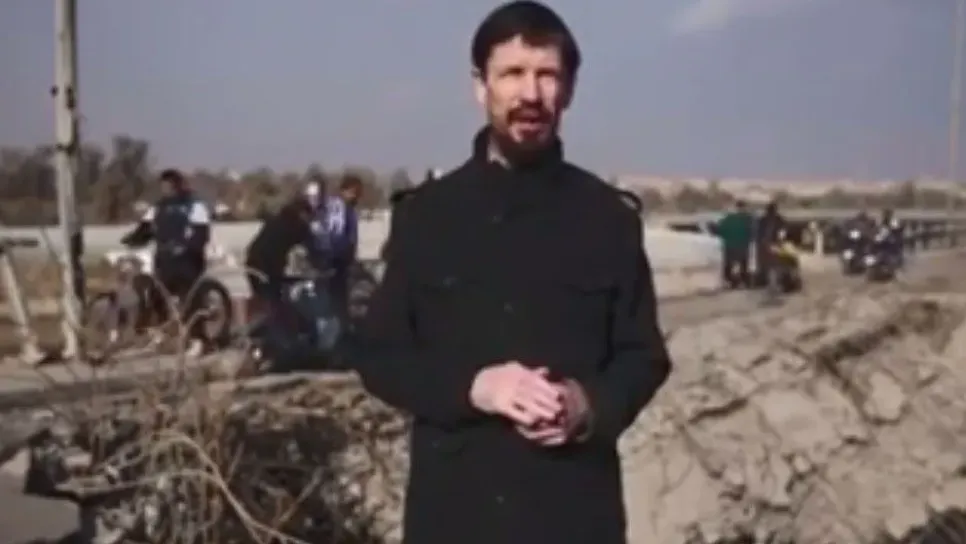 ظهر جون كانتلي، الصحفي البريطاني المخطوف لدى تنظيم "داعش" منذ أربعة أعوام، شريط دعائي جديد بثته مواقع موالية للتنظيم الإرهابي. ويمكن ملاحظة أحد.